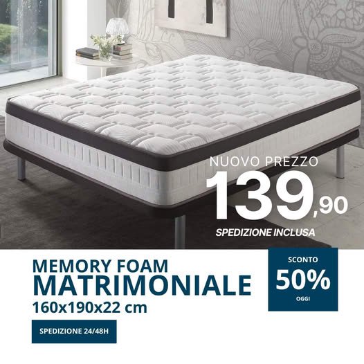Memory foam certificato, traspirante e ortopedico. Spedizione gratuita 24/48h in tutta Italia.